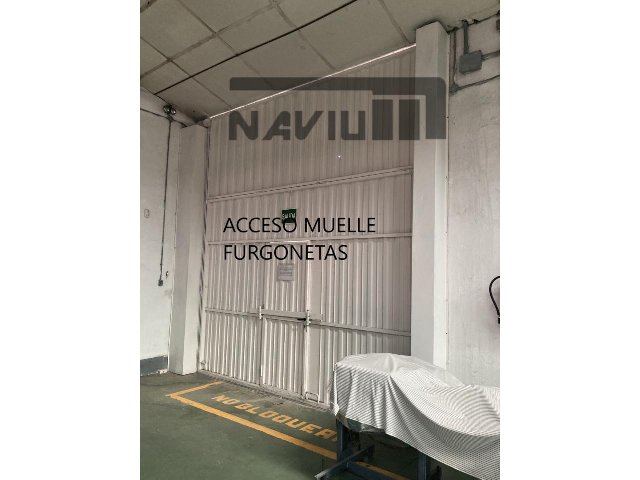 Acceso a nave mediante 1 portón TIR a calle principal y muelle de furgonetas en calle lateral.