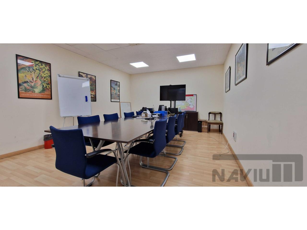 Oficinas acondicionadas y divididas en varias estancias, con carácter representativo. Falso techo, aseos, climatización, y mobiliario.